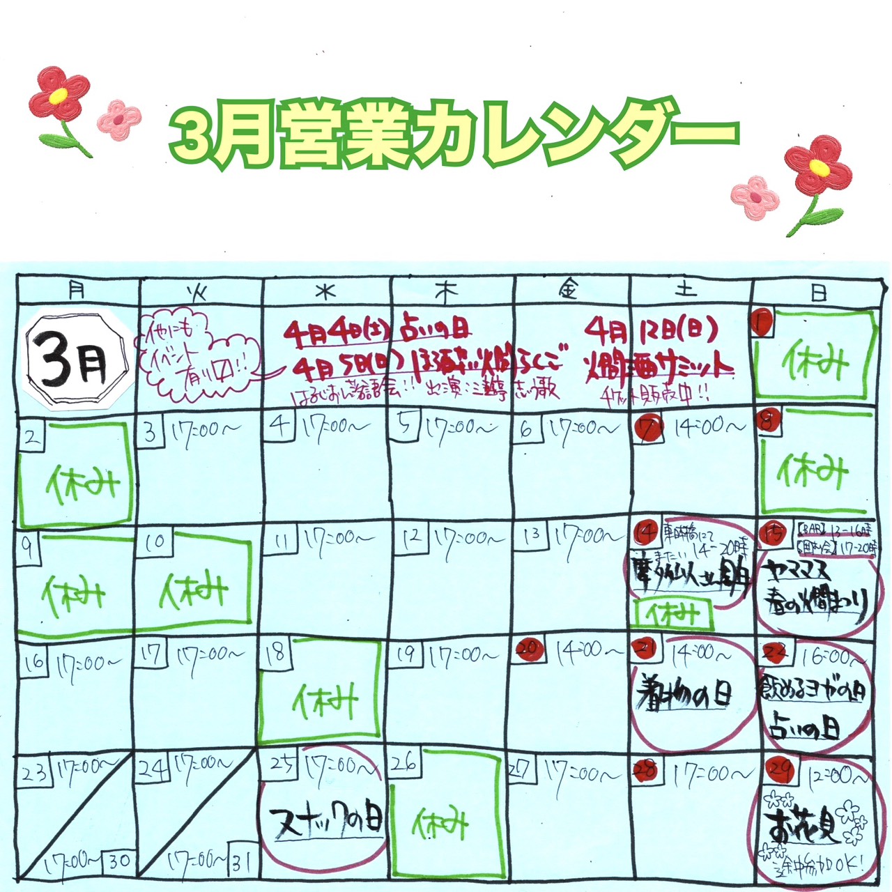 【4月の営業予定】 ※最新情報は、インスタグラムもチェックしてください @harukaokamidesu